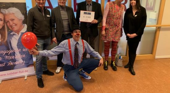 Der Gedanke, dass die Erlöse die Besuche der Clowns für ein ganzes Jahr absichern und damit den Bewohner*innen Freude und Glücksmomente schenken können, hat das Engagement der Flohmarkts Unterstützer*innen aus dem Lions Club und dem SOLIDAR e.V. beflügelt, sodass die stolze Summe von € 3.500 zusammengekommen ist.